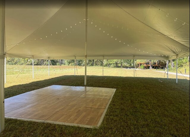 Can be set up on an indoor or outdoor surface. This is the same dance floor pieces used in the 16 x 24 ft dance floor, just a smaller 12x16 version. Works well under tent events or at indoor venues. Fits well under most size tents. Delivered and set up by Bedrock. Inquire for custom sizes.